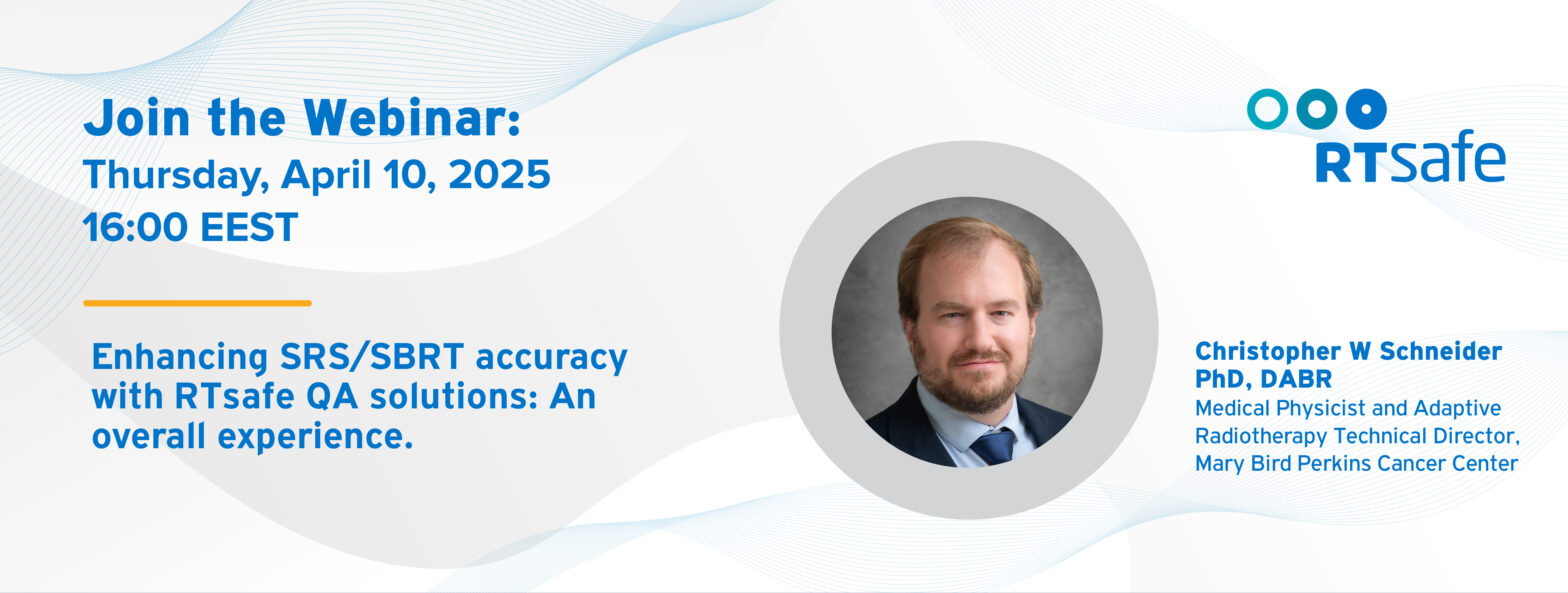 Join our webinar on Tuesday, April 10 at 16:00 EEST, lead by Christopher W Schneider, Medical Physicist (PhD, DABR) and Adaptive Radiotherapy Technical Director at Mary Bird Perkins Cancer Center, titled ’Enhancing SRS/SBRT accuracy with RTsafe QA solutions: An overall experience.’ Register for the webinar here
